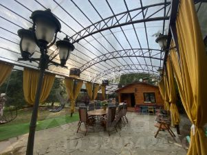 Участок 50 соток. Крытая зона барбекю 100м2, большой стол на 30 гостей ( максимальное размещение до 50 гостей), качели для взрослых и детей, зимняя и летняя надувная горка для детей, а также самокаты, игрушки