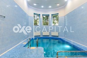 Лот d1469 Дом для большой семьи с бассейном, в отличном состоянии. Расположен в строгоохраняемом камерном поселке в населенном пункте Горки-2. В поселке прогулочная зона с великолепным ландшафтом, детская площадка, спортивная площадка. Цоколь: бассейн (6х5 м), сауна, душевая, комната отдыха, постирочная, с/у, котельная, кладовые. 1 этаж: холл, с/у, гостиная с камином, кухня - столовая с выходом на террасу, кабинет, зимний сад, хоз.помещение, гараж на 2 м/м с квартирой для персонала на 2-м этаже (отдельный вход). 2 этаж: 2 спальни с ванными комнатами и гардеробными, 2 спальни, ванная комната. 3 этаж: большая комната свободного назначения (детская игровая), комната, с/у. Гараж: Не выбрано
