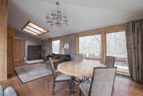 Дом полностью меблирован , дизайн интерьера выполнен в светлых тонах с применением экологических и органических материалов . Полы немецкий дуб, вся мебель, предметы интерьера , освещение - привезены из США.