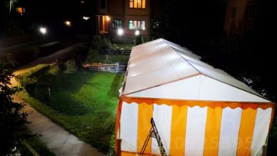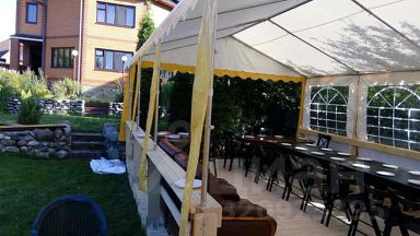 За праздничным столом в доме до 40 гостей,танцпол в доме в большой прихожей, второй танцпол (аллея вдоль двора 60 м. по ширине 3 м. всего 180 кв.м.) во дворе рядом с верандой. Шуметь на территории можно,соседи далеко.