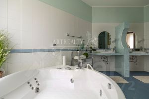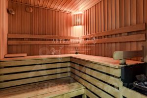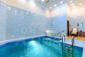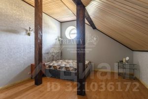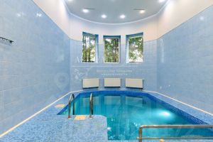 Мансарда оборудована зоной отдыха и санузлом. Цокольный этаж дома включает в себя бассейн, сауну, комната отдыха, гардеробную и санузел. С другой стороны дома находится помещения для проживания обслуживающего персонала, состоящее из кухни и двух комнат с санузлом.