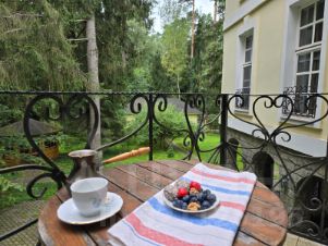 Полностью оборудованная кухня (посуда, утварь, бокалы, мясорубка, соковыжималка, блендер, посудомоечная машина, газовая плита).