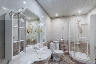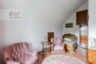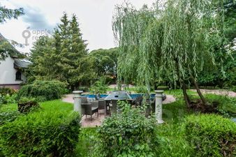 Площадь дома - 1100 кв.м. Материал дома - кирпич. Количество этажей - 3. Спален - 5. Санузлов - 7. Площадь участка - 30 соток. Тип участка: лесной. Есть бассейн 13х3 м2. Есть гараж на 2 а/м. Есть блок для персонала с отдельным входом. В интерьере использованы скульптуры Daum, работы Энди Уорхола, изделия Фаберже и др.