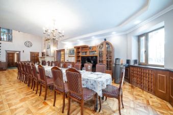 УЧАСТОК: очень красивая благоустроенная территория 1 га. Множество хвойных и лиственных деревьев. Ландшафтный дизайн. Качели, шезлонги, садовая мебель. Теннисный корт, большой пруд, парковка на 10-12 автомобилей. Гараж, вольер для животных. Домик персонала. Площадка для уличных игр. Большая крытая мангальная зона с казаном и кухней.
