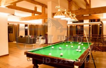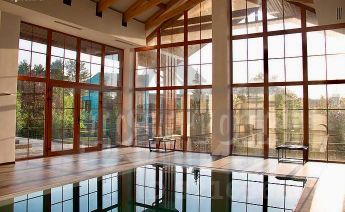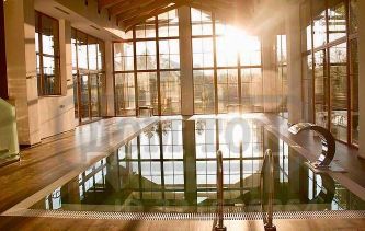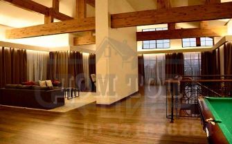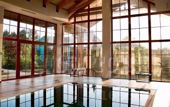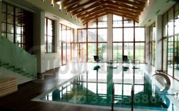 СПА-зона: в стиле шале, пространство с панорамными окнами и высокими потолками; бассейн 16*5*2 м с водопадом, сауна, хаммам, душевая.