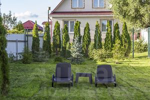 Просторная беседка с мангалом и комфортной садовой мебелью;