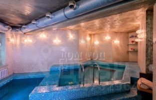 На цокольном этаже СПА-зона: большая гостиная, бильярд, тренажеры, хаммам, подогреваемые взрослый и детский бассейны, душевая, с/у.