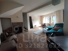 Охраняемый коттеджный посёлок. Тихий , уютный , с развитой инфраструктурой, интеллигентные соседи. На территории поселка: спортивная площадка, детская площадка, прогулочные зоны. В аренду предлагается прекрасный дом на лесном участке с прудом. Продуманная планировка включает все необходимое для комфортного проживания: 1 этаж: прихожая (с выходом в гараж на 2 м/м), гостиная (с камином), кухня-столовая (с выходом на крытую веранду), с/у, гостевая комната с гардеробной, сауной с душем; 2 этаж: гостиная с камином (второй свет: библиотека, комната для няни), 3 спальни, с/у, 2-х уровневая хозяйская спальня с с/у и гардеробной. Участок ухоженный, с ландшафтным дизайном. На участке : хвойные деревья и кустарники, барбекю, детская площадка, искусственный пруд с рыбками (150 кв.м).