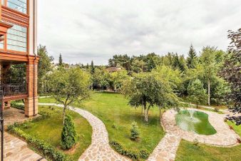 Расположенный в живописном уголке, недалеко от городской суеты, этот особняк предлагает уединение и комфорт. Благоустроенная территория с ландшафтным дизайном, зелеными газонами, декоративным освещением и разнообразием деревьев создает атмосферу гармонии и спокойствия. Здесь вы найдете уютную беседку с зоной барбекю, просторную террасу с качелями и даже искусственный пруд, добавляющий очарования этому месту.