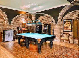 Цокольный этаж — домашний кинотеатр, бильярдная, постирочная, гардеробная, санузел.