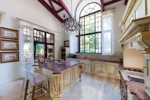 1 этаж — прихожая с гардеробной, гостиная с камином и выходом на террасу, кухня-столовая, кабинет, 2 спальни с собственными санузлами, бассейн, SPA-зона с сауной и санузлом, кухня для персонала.
