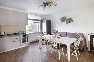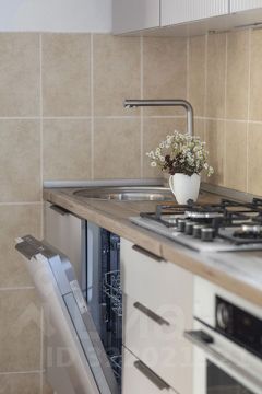 - Бытовая техника: посудомоечная машина, холодильник с морозильной камерой, газовая панель, духовой шкаф, стиральная машина, микроволновка, пылесос, электрический чайник, гейзерная кофеварка, блендер, фен;