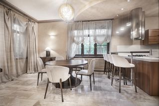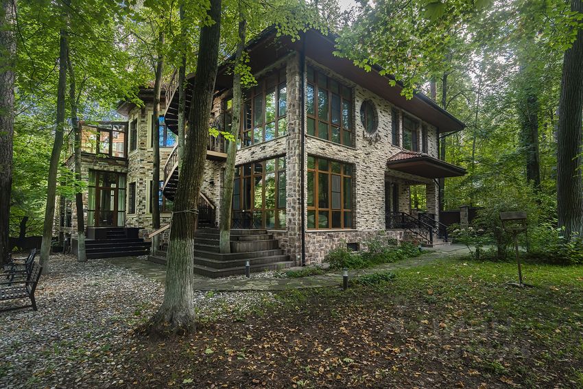 В аренду предлагается четырехуровневый загородный особняк в деревне Жуковка на правом берегу Москва-реки.