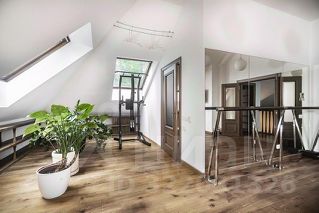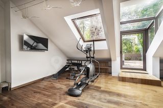 Мансарда: кухня, спальня с гардеробной и санузлом, терраса, тренажерный зал, холл.