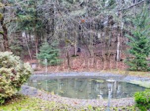 УЧАСТОК: ухоженная территория 25 соток с искусственным прудом и мостиком. На участке имеются лестницы, лавочки, детски качели. Множество лиственных и хвойных деревьев. Вместительная беседка из бревна с уличным мангалом, камином, большим столом, мангалом и казанами. Терраса с садовой мебелью, парковка