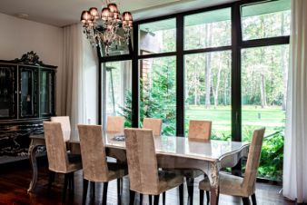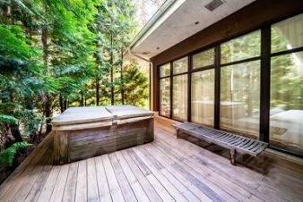 В доме предусмотрены 4 спальни, спа-зона с бассейном 2,512 м, сауной и выходом на террасу с джакузи, просторная гостиная с камином и вторым светом, столовая, кабинет, библиотека, блок для персонала с отдельным входом.