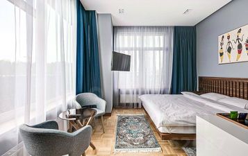 Внутреннее пространство коттеджа оформлено в современном стиле с использованием качественных материалов и мебели, что создаёт атмосферу уюта и удобства. Каждый гость сможет оценить продуманный дизайн комнат, где есть всё необходимое для приятного времяпрепровождения: удобные кровати, индивидуальные санузлы с современными средствами для личной гигиены, а также кондиционеры и телевизоры с плоским экраном для развлечений. Для любителей свежего кофе и лёгких закусок в комнатах предусмотрены кофемашины и мини-бары, а также доступна услуга доставки еды и напитков, что особенно удобно для отдыха в приватной обстановке.