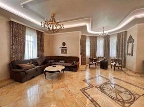 Первый этаж полностью посвящен торжествам и встречам: здесь расположен элегантный банкетный зал с изысканной мебелью, рассчитанный на значительное количество гостей, и просторная гостиная с двусторонним камином, объединяющим пространство и создающим особую атмосферу. Кухня с островком и барной стойкой оснащена всей необходимой техникой для приготовления и подачи блюд.