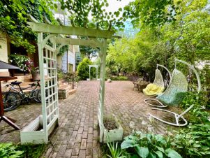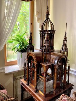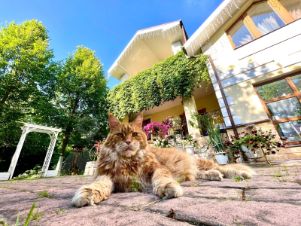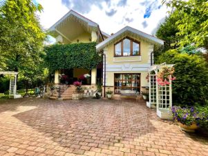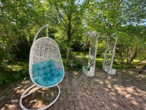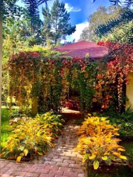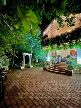 Затерянный среди живописных рублевских пейзажей, маленький роскошный дворец утопает в глубине изумительного сада , состоящего из множества редких растений и цветов, среди которых вы встретите 18 видов хвойных деревьев, магнолии, липы, каштаны, плакучие березы, канадские клены, сирень. Начиная путешествие по каштановой или сосновой аллее, вы очутитесь в укромном месте сада , где произрастают все фруктовые деревья и ягодные кусты, плодоносящие в Подмосковье : яблоня), слива, груша, черешня, вишня, голубика , малина .