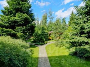 На участке выполнен ландшафтный дизайн с небольшим прудом.