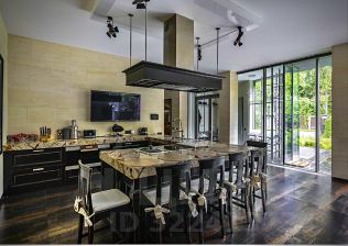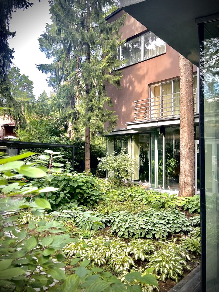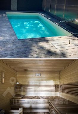 1-й этаж: холл, гардеробная, кухня, столовая, гостиная с камином, кабинет, сауна, комната отдыха, два с/у, лифт, выход на террасу с теплым уличным бассейном