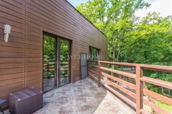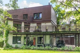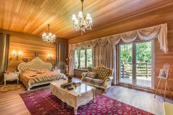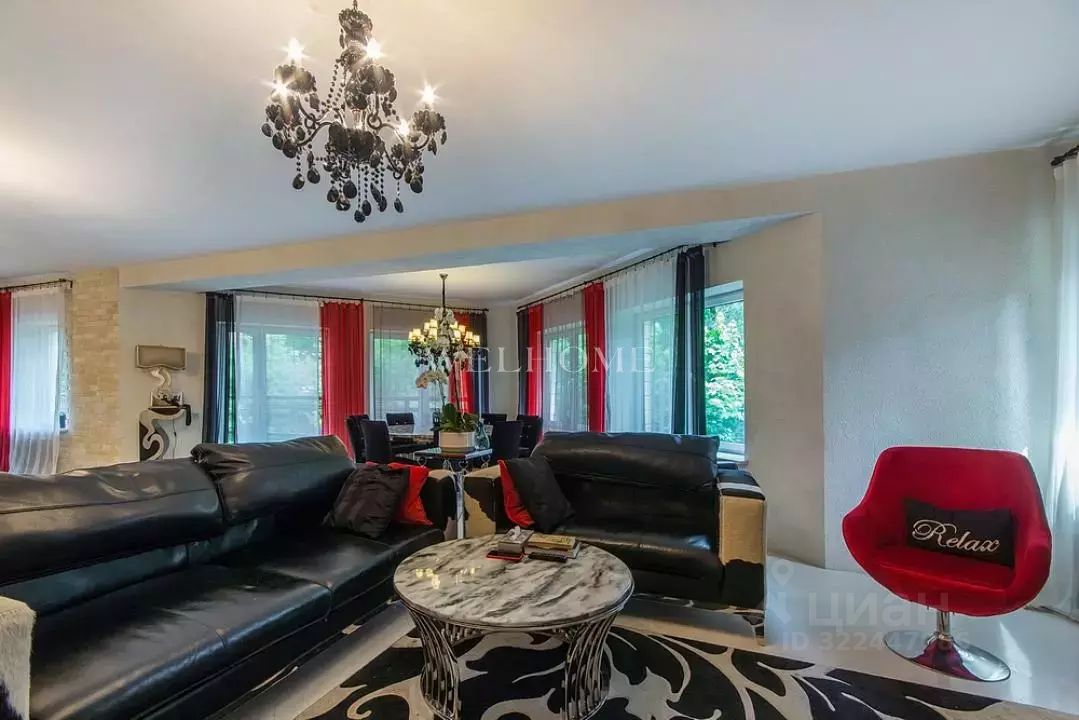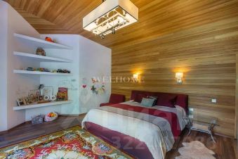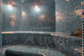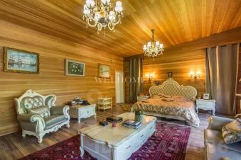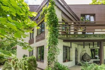 Предлагается современный особняк на ландшафтном участке в коттеджном поселке. Фасад отличает комбинированная отделка из кирпича и бруса, кровля эксплуатируемая. Внутреннее пространство дома предусматривает 3 спальни, гостиную, бассейн с сауной и джакузи. Интерьер оформлен в современном стиле с элементами ар деко по авторскому проекту. Комнаты меблированы дизайнерской мебелью и декорированы стильными люстрами, светильниками и текстилем. Установлена качественная сантехника, современная кухня с бытовой техникой премиум-класса.