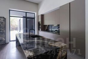 Мастер спальня на 1 эт с выходом в бассейны. В отделке использован натуральный мрамор, гранит редких пород, на полу инж доска. Кухня оборудована техникой Miele. Никто не жил .