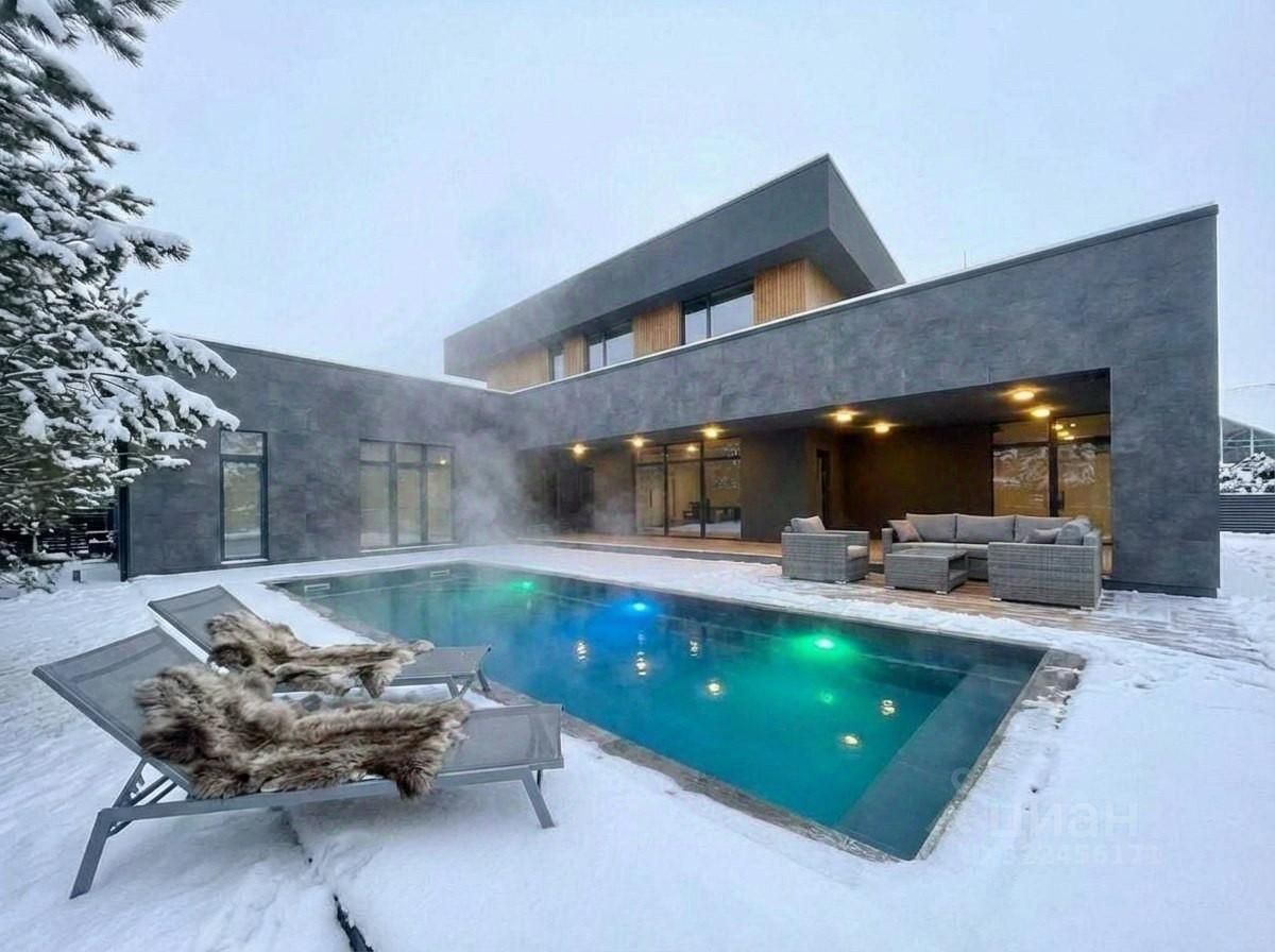 Потолки 4 метра, приточно-вытяжная вентиляция , уличный бассейн 10.5*3.5 с подогревом и противотоком .