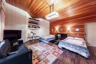 2 этаж: огромная гостиная с камином, выходом на веранду, санузел с душевой, гостевая спальня.