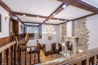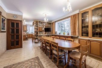 Функциональная планировка: просторная кухня-столовая с выходом на веранду, огромная гостиная с камином, 5 спальных комнаты,5 сан.узлов, бассейн 10,5 метров, русская баня, комната отдыха, купель, спортзал,гараж на 2 автомобиля.