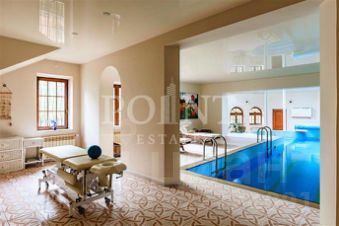 Лот: 114568. К продаже предлагается роскошный загородный дом площадью 1100 м2, построенный "под ключ" с полной меблировкой. Дом сочетает в себе продуманную планировку и высокий уровень комфорта. Цокольный этаж включает винную комнату, библиотеку, три помещения свободного назначения и холл. На первом этаже расположены: просторная гостиная с камином, столовая, кабинет, гостевой санузел, бассейн, встроенный гараж, постирочная, котельная, гардеробная, кладовая и выход на террасу. Второй этаж предлагает: кабинет, спальню с санузлом, спальню с гардеробной и санузлом, детскую игровую, два санузла, сауну, тренажерный зал, гардеробную, балкон и блок для персонала. Мансардный этаж представляет собой уютную гостиную, три спальни, санузел и балкон. Ключевые преимущества дома: собственная спа-зона с бассейном и сауной, винная комната, библиотека, несколько кабинетов и просторные гардеробные. Благоустроенная территория площадью 30 соток дополняет образ идеального дома.