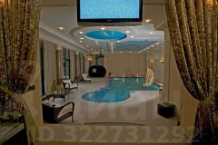 1-ый уровень: 2 с/у, бассейн, второй свет, выход на участок, гостевая спальня, гостиная, детская, душ, кабинет, каминный зал, комната отдыха, кухня, кухня-столовая, холл