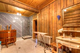 1й этаж: холл, гостиная со вторым светом (120 кв.м.), кухня-столовая (50 кв.м.), 2 спальни, 2 с/у, сауна (электрическая), купель;