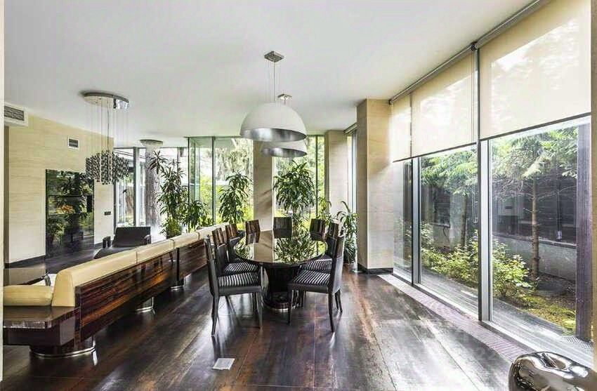 Резиденция расположена в охраняемом поселке в окружении живописнейшей природы лесного массива. Выполнена в ультрасовременном стиле с большими остекленными поверхностями, дом окружает благоустроенный лесной участок с ландшафтным дизайном.