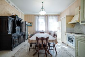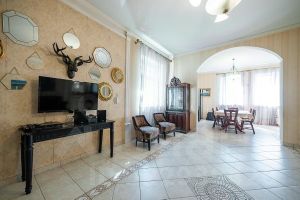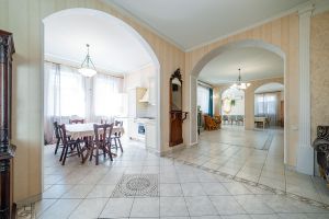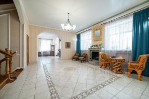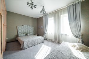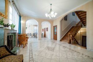 Трёхуровневый особняк площадью 500 м2 расположен в 18 км от МКАД по Минскому, Можайскому или Рублевскому шоссе, д. Жаворонки, Одинцовский район.