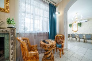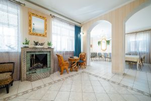 -1 этаж: каминный зал, кухня, зона для танцев и караоке, банкетный зал, кальянная, санузел, веранда