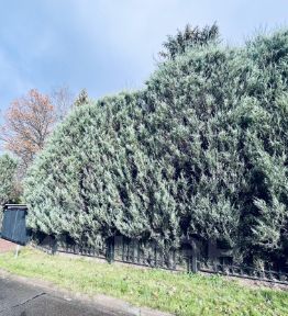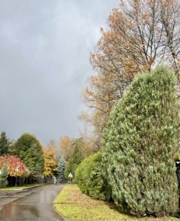 Живописный ухоженный участок с лесными и плодовыми деревьями, за которым ухаживает садовник. Вечнозеленая изгородь. Есть крытая парковка для трёх автомобилей и одно парковочное место открытое.