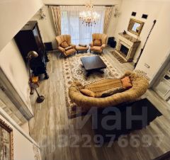 Великолепный загородный дом в элитном поселке "Изумрудный век" в Горках 2. На первом этаже гостиная с мягкой группой, ТВ, камин.