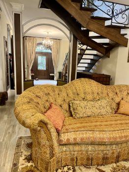 В доме дорогой качественный ремонт, уникальная мебель и предметы интерьера, изысканные люстры и светильники.