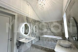 В камерном посёлке Усово-8 новый загородный дом под ключ. Фасад здания выполнен в европейском стиле, облицован клинкерным кирпичом. Интерьер дома выполнен в современном стиле, предусмотрены 4 спальни, со своими с/у, и гардеробными, в гостиной панорамное остекление, выход на улицу в зону отдыха. В цоколе финская сауна. (можно обустроить спальню с с/у). В контуре дома расположен навес на 2 м/м. На участке выполнен ландшафтный дизайн и обустроена зона барбекю. Мебель будет куплена под арендатора. (лот 9657)