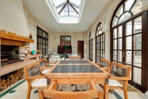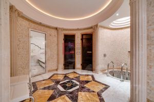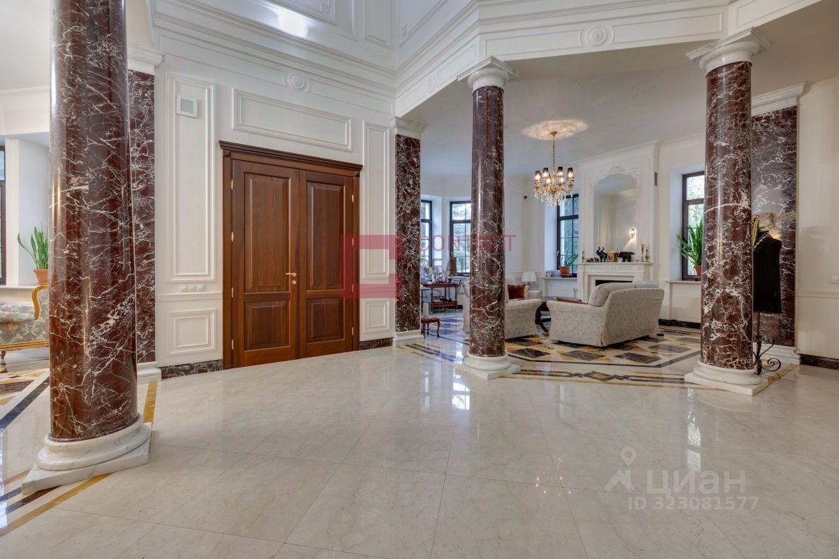 В доме: 2 гостиные с камином, кухня-столовая с выходом в зону гостиной барбекю, рабочая кухня, 4(5) спален, кабинет, SPA-зона: бассейн, хаммам, сауна с русской печью с изразцами, тренажерный зал; домашний кинотеатр, бильярдная, мансардная студия для проживания молодого поколения.