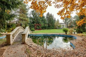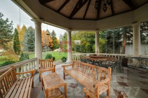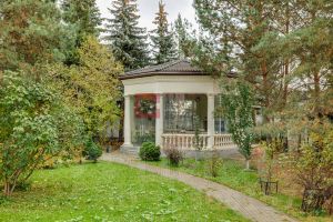 На участке 52 сотки помимо основного дома расположены закрытая беседка-барбекю с профессиональной кухней, домик для персонала. Выполнены ландшафтные работы, автополив, фонтанная группа на въезде.