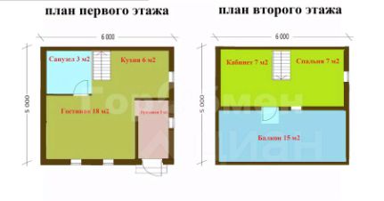 2 этаж: спальня 7 м2, кабинет 7 м2, балкон 15 м2.
