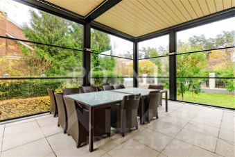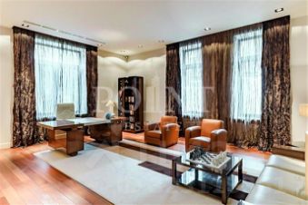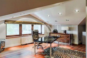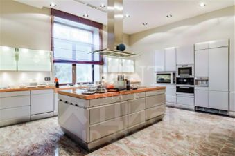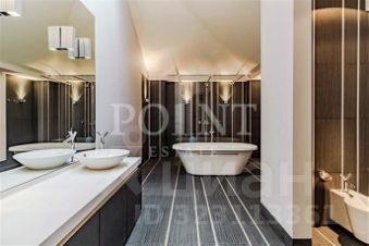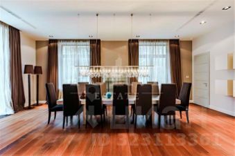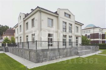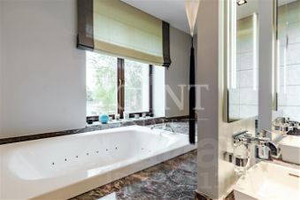 Лот: 114701. Предлагается в аренду четырехуровневый загородный дом 1450 кв.м, спроектированный известным московским архитектором, расположенный в жилом коттеджном поселке на Рублево-Успенском шоссе. Интерьер дома выдержан в стиле современная классика, есть вся необходимая мебель от ведущих производителей, и современные аксессуары. В доме установлена система приточно-вытяжной вентиляции, есть водяной подогрев полов. На первом уровне (цоколь) находится бильярдная, комната отдыха, сауна, хаммам, полноценный и гостевой санузлы, блок для обслуживающего персонала, котельная и постирочная. Второй уровень представлен стильной гостиной с камином, функциональной кухней, столовой, кабинетом, санузлом и гардеробной, холлом, прихожей. Третий уровень отведен под четыре спальни с индивидуальными гардеробными и санузлами, холл. Четвертый уровень (мансарда) включает в себя еще одну спальню с гардеробной и санузлом. Придомовая территория 27 соток благоустроена и озеленена, есть изысканный фонтан. Отдельно построен гараж на четыре машино-места с квартирой для персонала, уютная беседка, чайный домик и летняя веранда для отдыха на свежем воздухе.