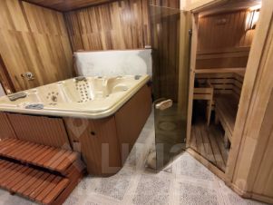 1 этаж: большая гостиная с действующим камином и обеденным столом, оборудованная кухня с ещё 1 столом и выходом на террасу, коридор и санузел; в отдельной части - зона отдыха с большим тёплым джакузи и финской сауной, санузел с душем.