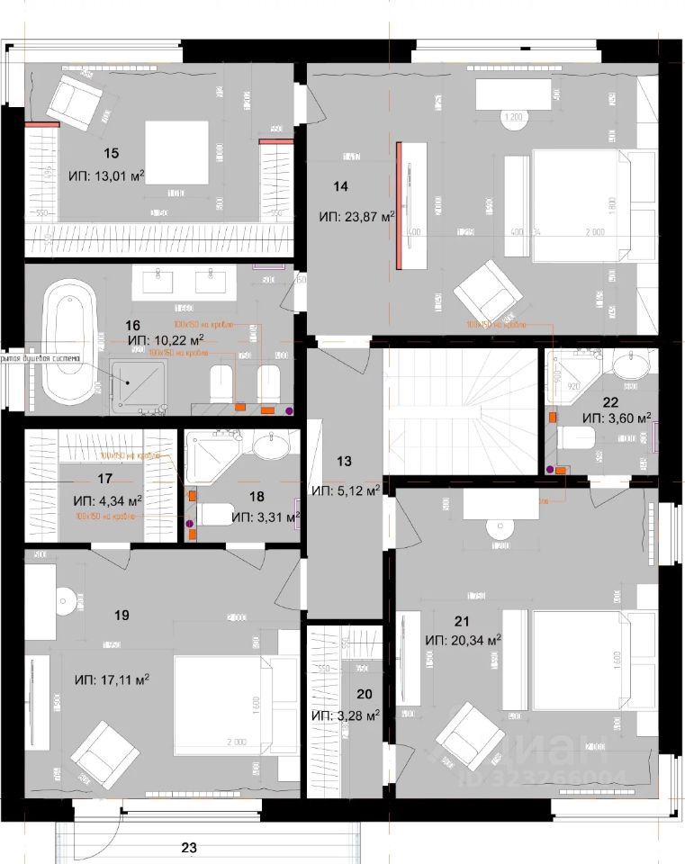 На втором этаже полноценная мастер спальня с 2ух спальной кроватью, большой гардеробной и ванной комнатами, а так же балкон. Две детские спальни со своими санузлами и гардеробными ( в одной из детской комнат 2ух спальная кровать)