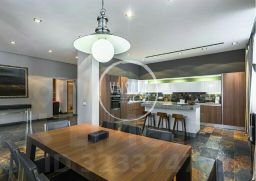 1-й этаж: холл, гостевой с/у, 2 гардеробных; SPA-зона: бассейн с сауной, душевой и с/у; кухня-столовая, гостиная, спальня с гардеробной и ванной комнатами, кинотеатр, постирочная.