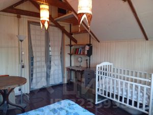 На первом этаже кухня 15 кв.м., жилая комната с двумя диванами 20 кв.м. и большая ванная комната 12 кв.м. В ванной установлена кедровая бочка с парогенератором. На втором этаже две отдельные спальни по 15 кв.м., есть балкон.