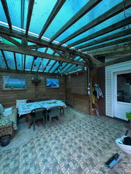 На территории есть летняя кухня совмещенная с беседкой , все коммуникации подведены . Детская площадка , теплица , навес для авто - все это есть на территории участка.