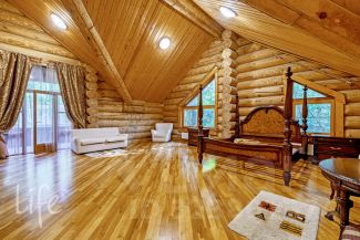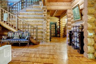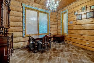 Ни с чем не сравнимая атмосфера экологичного деревянного дома, наполненность светом и воздухом за счет высоких потолков, огромных окон, просторных площадей. Ручная роспись, раритетная отреставрированная мебель, элементы и предметы декора, картины придают логическую завершенность интерьеру.